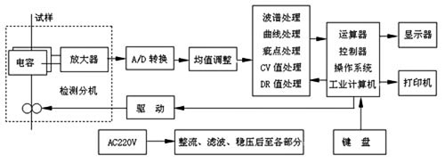 電容式條干均勻度儀是運(yùn)用電容測(cè)試原理(圖26-2 電容式條干均勻度儀原理框圖),當(dāng)被測(cè)試樣以規(guī)定的速度通過(guò)電容傳感器時(shí),由于線密度變化會(huì)引起傳感器平行極板電容介電常數(shù)的變化,從而導(dǎo)致電容量變化,由檢測(cè)電路轉(zhuǎn)換成與線密度變化相對(duì)應(yīng)的信號(hào)電壓變化,再經(jīng)放大、A/D轉(zhuǎn)換后進(jìn)入計(jì)算機(jī)專用軟件管理系統(tǒng),經(jīng)運(yùn)算處理后將試樣線密度不勻以曲線、數(shù)值、波譜等形式輸出 (見(jiàn)圖26-3測(cè)試系統(tǒng)主畫面) 。電容式條干均勻度儀可以實(shí)現(xiàn)對(duì)細(xì)紗、粗紗、條子線密度不勻程度的測(cè)量,還可提供CV值、各檔門限疵點(diǎn)數(shù)等有價(jià)值的參考數(shù)據(jù),并在屏幕上顯示紗條實(shí)時(shí)不勻率曲線圖、波譜圖及其他統(tǒng)計(jì)圖形。這些圖形能直觀的反映紗條狀況,有助于生產(chǎn)設(shè)備運(yùn)行狀況的監(jiān)控與分析。