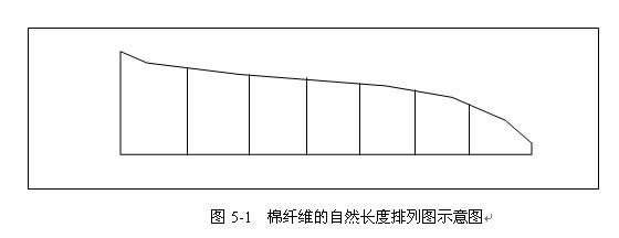 棉纖維由自然生長而成,長度很不均勻,一般為27mm、29mm、31MM等。如果將一束棉纖維試樣從長到短逐根排列,使各根纖維的一端位于一根直線上,就可得到棉纖維的自然長度排列,亦稱拜氏圖,其圖形如圖5-1所示。