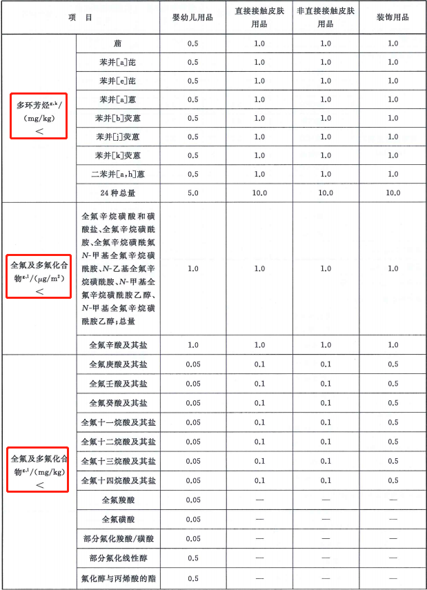 新版標準增加了多環(huán)芳烴、全氟及多氟化合物、殘余溶劑、殘余表面活性劑、潤濕劑、紫外光穩(wěn)定劑的禁限用要求及具體物質名單附錄:附錄G(多環(huán)芳烴)、附錄H(全氟及多氟化合物)、附錄I(殘余有害化學物質)和附錄J(紫外線穩(wěn)定劑)。
