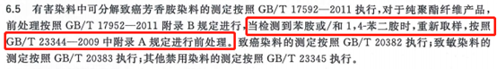 修改了純聚酯纖維產品中可分解致癌芳香胺染料的測試方法,前處理按GB/T 17952-2011附錄B規(guī)定進行,當檢測到苯胺或/和1,4-苯二胺時,重新取樣,按照GB/T 23344-2009中附錄A規(guī)定進行前處理。