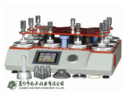用途:用于測(cè)定機(jī)織物、針織物、非織造物的耐磨損性能和用于測(cè)定織物在輕微壓力下的抗起球性能,毛織物更為適宜。結(jié)構(gòu)原理:微機(jī)技術(shù)控制,裝在磨頭上的試樣在規(guī)定的壓力下與磨臺(tái)上的自身織物磨料相互摩擦一定次數(shù)(8個(gè)試驗(yàn)臺(tái)可以分別計(jì)數(shù)),運(yùn)動(dòng)軌跡可按大、小兩個(gè)(轉(zhuǎn)換)李沙育(Lissajous)圖形和一個(gè)水平軌跡方向(轉(zhuǎn)換)摩擦。